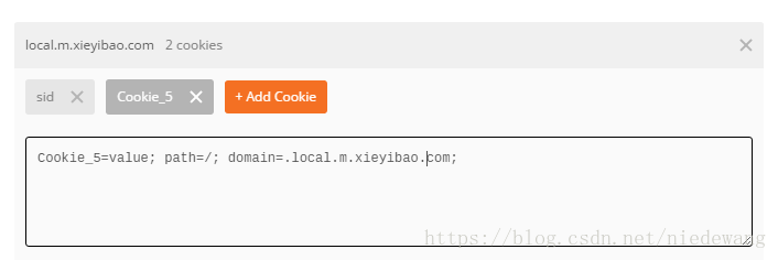 添加格式如下,牵涉到登陆的一般cookie 名为sid,domain,为你的网站